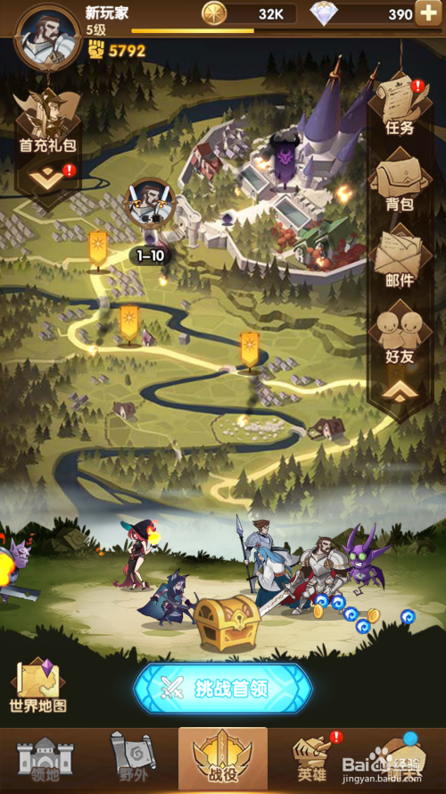 打开手机后进入剑与远征游戏,点击底部的英雄