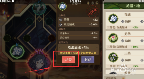 第四:装配灵器后点击需要进级的灵器。