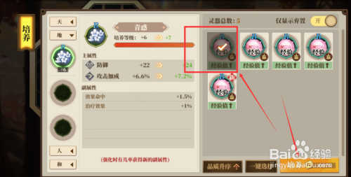 第六;选择进级所需要的【材料】和【金币】点击【培育】进级完当作。