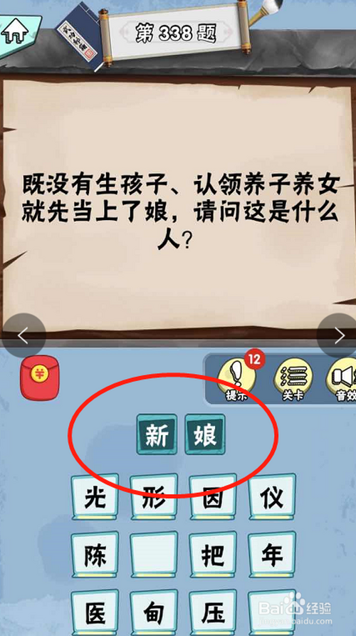 准确谜底是“新娘”,只要当作为新娘子,就会被称为是新“娘”。