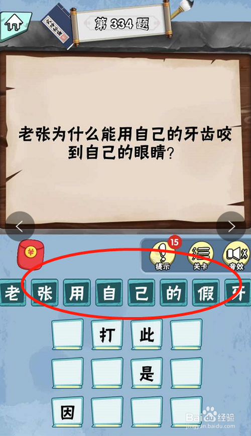 脑子急转弯达人游戏Lv6绝代奇才第334关内,提问老张为什么能用本身的牙齿咬到本身的眼睛。