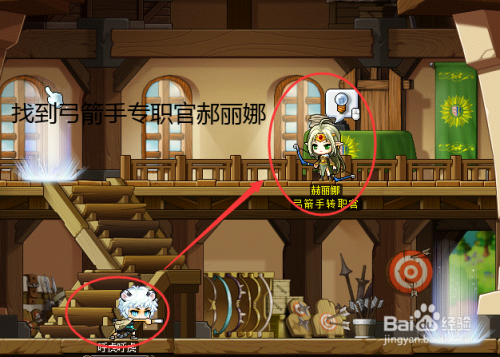 起首移动到弓手村弓箭手培训中间,就是从图示的房子传送口进入。
