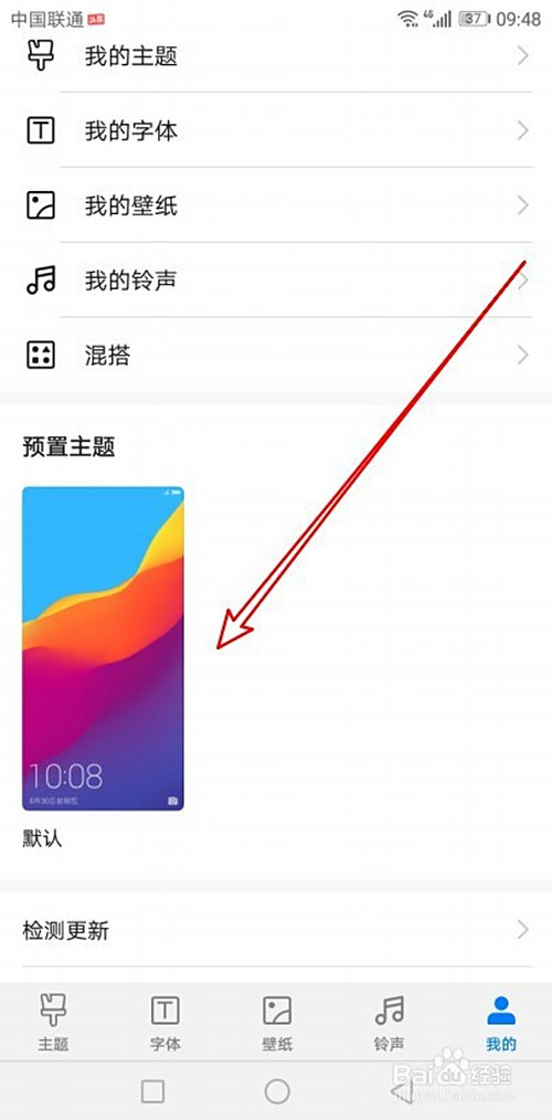 这时可以看到当前的手机本家儿题已设置为默认本家儿题了。