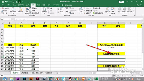 5.直接输入日期,将鼠标刷黑之后按下f9可以获得运算后的成果,只有2017,申明后面的日期是无效的。(未完待续...)
