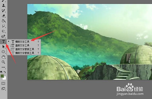 在东西栏中,找到“文字东西——横排文字东西”,如图: