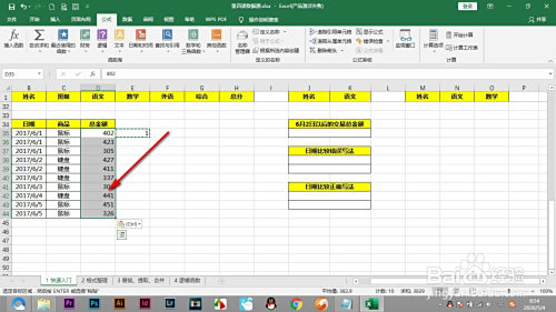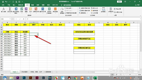 1.起首我们可以看到当前的表格中有一些数据是以文本形式存储的数字。