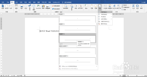 进入页码选项,点击页面顶端页码。