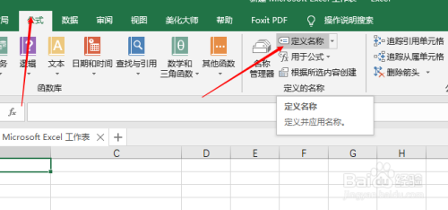 然后打开一个空白表,选择公式选项卡,点击界说名称