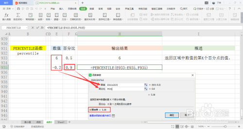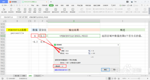 可以看到会弹出一个弹窗,里面有两个参数需要填入,别离是数组、百分比。可以手动输入,也可以鼠标选中单位格的内容引用。