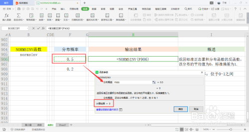 可以看到会弹出一个弹窗,里面只有一个参数需要填入,即分布概率。可以手动输入,也可以鼠标选中单位格的内容引用。