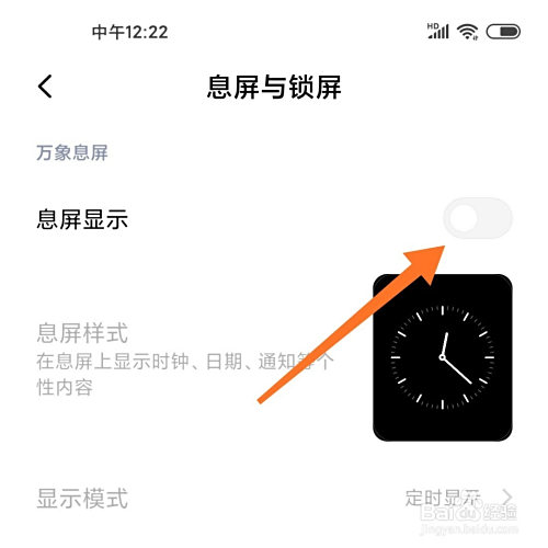 3、在息屏与锁屏页面中,我们点击将其打开;