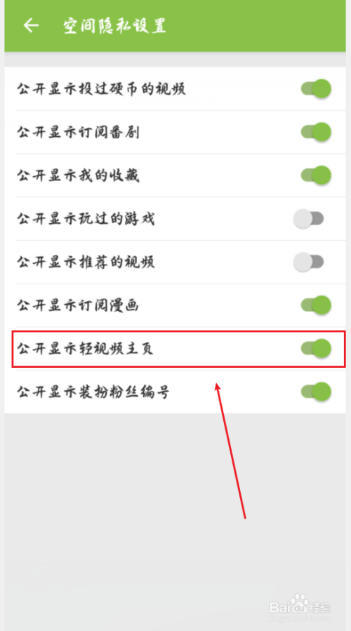 最后点击公开显示不放在眼里频本家儿页选项旁边的按钮