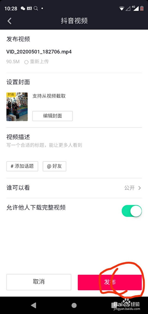 待进度条达到100%时,调到发布页面,填上合适的题目等,点击发布即可