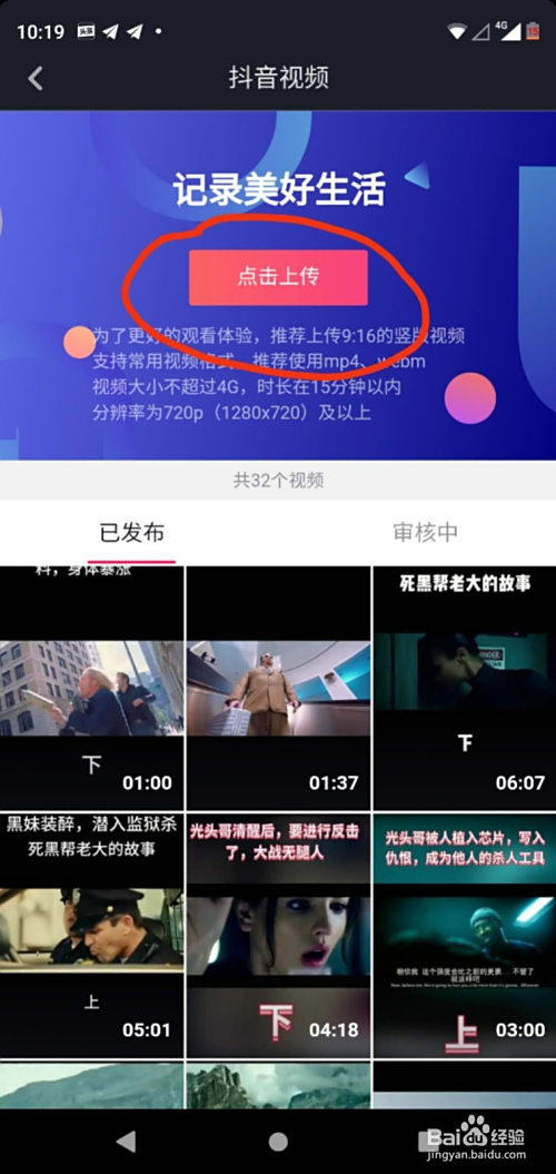 打开‘若何上传1-15分钟的视频?’,‘’点击上传‘’