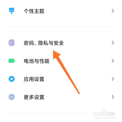 在设置中,我们下拉列表,找到指纹暗码一栏。