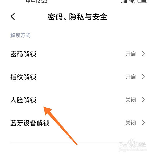 最后,我们将人脸解锁点击打开即可。