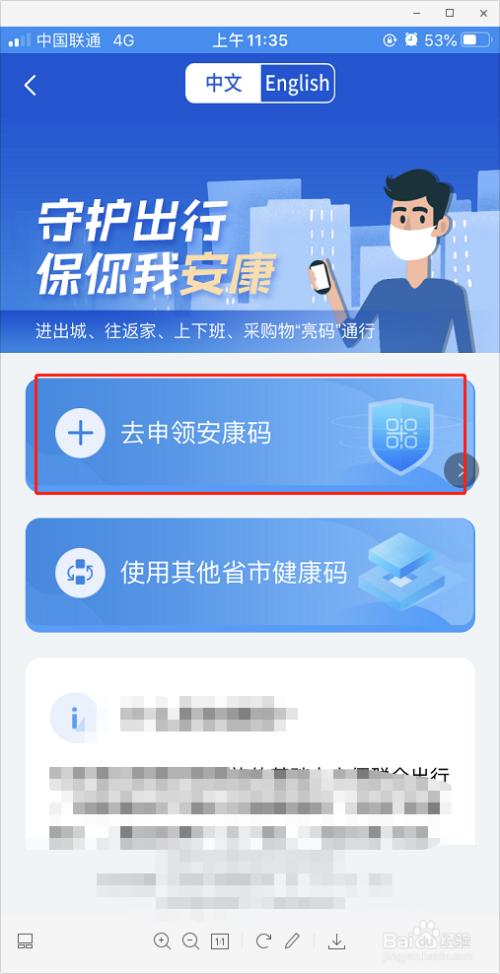 城市选择完毕后,点击”去申领安康码“选项按钮,并进入。