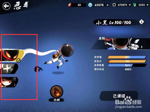 进入后,在左侧边选择您所获得“忍界豪强”徽记的忍者,我这边是小黑获得的,所以我选的是小黑。