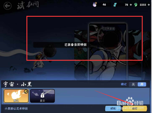 设置当作功后,即可看到当前穿戴的皮肤上有“忍界豪强”的徽记了。