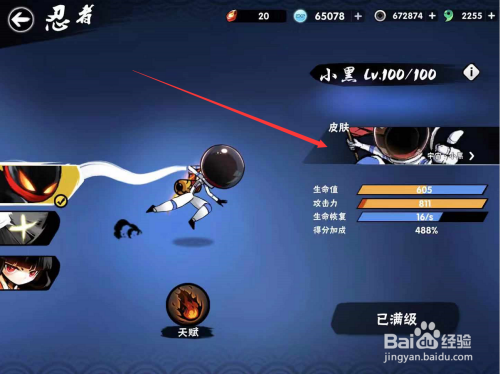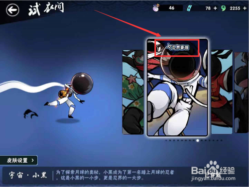 在忍者的页面中,在右侧找到“皮肤”,进行点击进入。