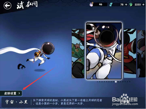 进入试衣间后,找到左下角的“皮肤设置”,进行点开。