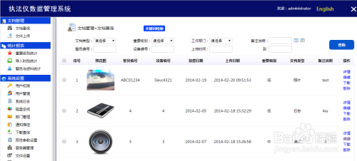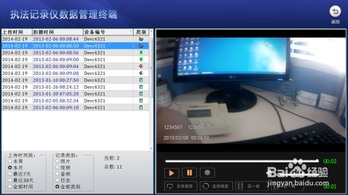·可按照警号、法律仪设备号,文件关头备注信息,文档类型,上传时候进行检索综合查询相关视音频讯息;