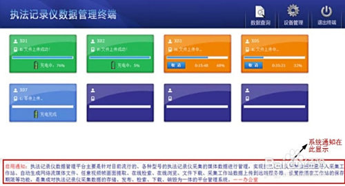 ②采集站:法律记实仪上传视音频文件到采集站,此时采集站可为法律仪进行充电、上传完当作清空法律仪的视音频文件以便下次正常录制有充沛的存储空间,采集站自带法律仪办理软件,可将法律仪的视音频按照警号,视频,音频,文件进行归类,便利检索查找。
