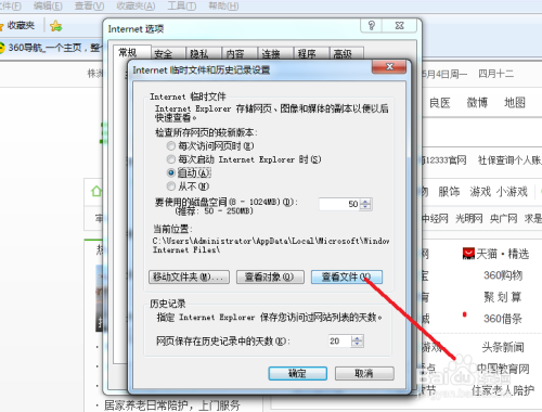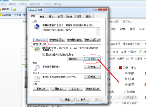 在【浏览汗青记实】位置,点开“设置”找到“Internet姑且文件夹”选项。