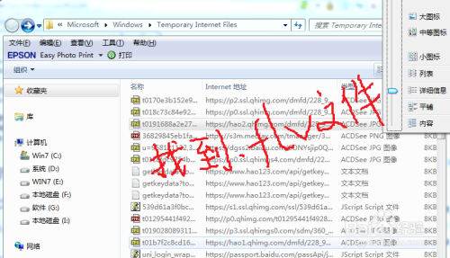 打开之后就会出来良多文件,这些都是在网上所看过浏览过的网页主动保留下来的文件了。点击右上角“将文件的“摆列体例”按文件巨细进行排序”一下。文件格局的后缀名为“flv”的文件就是在“士豆网”上在线看完后主动保留下的文件了。