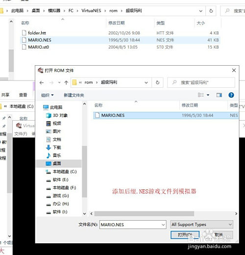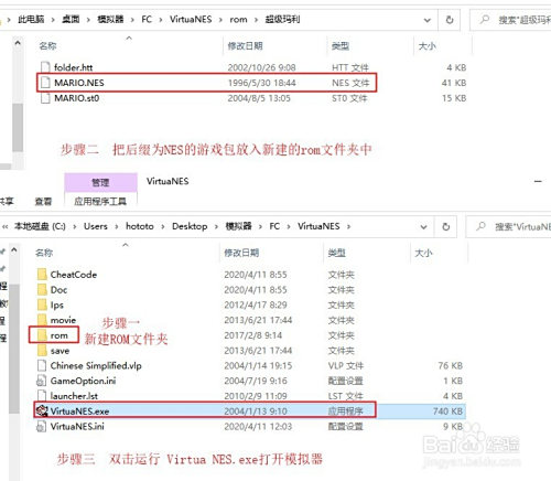 打开VirtuaNES文件目次,新建一个rom文件夹,把下载好的NES游戏文件放入里面。双击运行NES模拟器