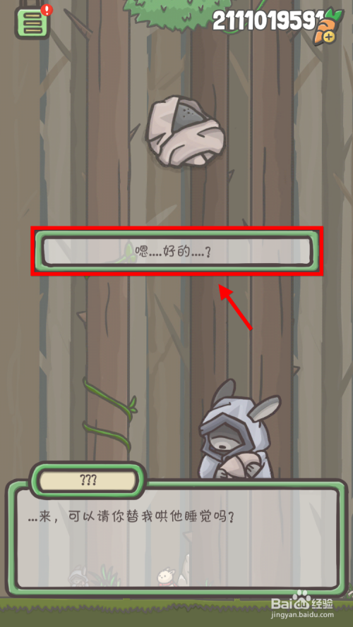 在丛林中找到抱娃娃的婆婆,点击和TA对话。