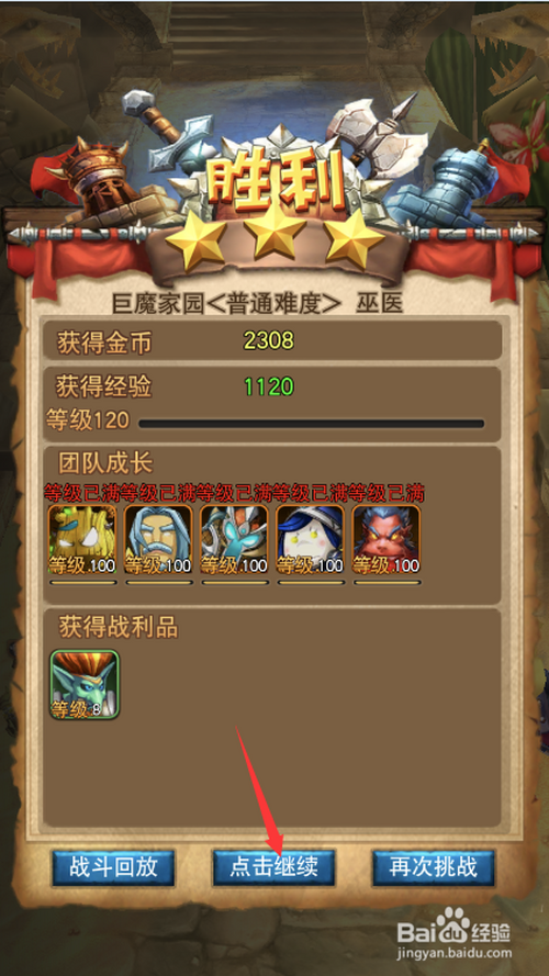 本关卡奖励1030点经验,点击下方点击继续按钮分开副本。