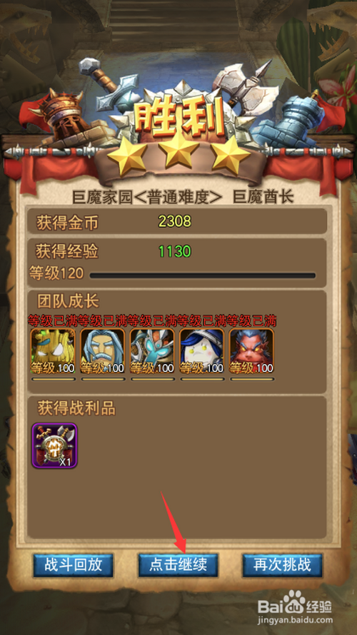 本关卡奖励1030点经验,点击下方点击继续按钮分开副本。
