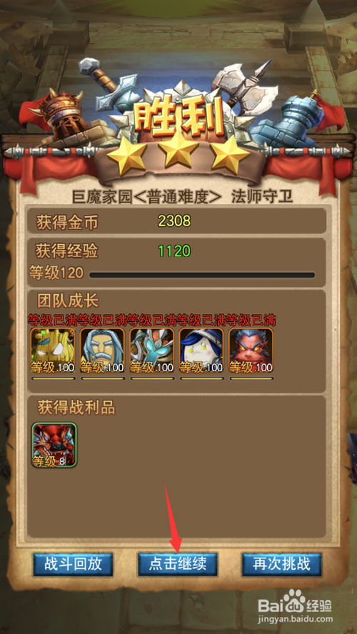 本关卡奖励1120点经验,点击下方点击继续按钮分开副本。