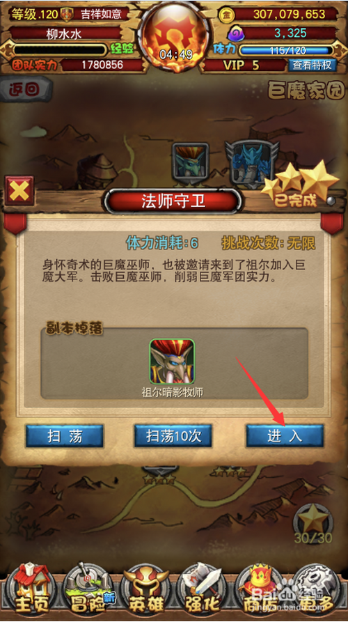 1.点击本家儿菜单冒险,再点击子菜单副本。