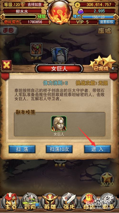 1.点击本家儿菜单冒险,再点击子菜单副本。
