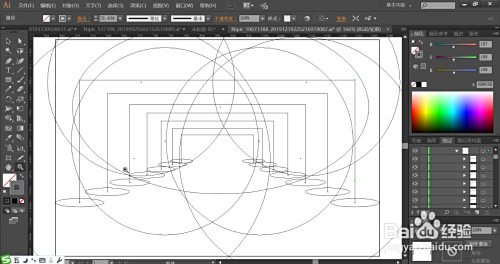 利用钢笔东西画出球门霓虹的矩形布局,再画出上面灯光与下面灯光的光圈路径,两侧的灯光路径用卵形来绘制。