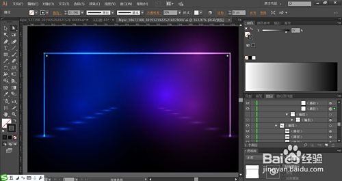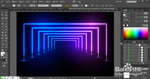 不竭的复制线条再用相似色进行描边,再设置出分歧的透明度,让球门线呈现霓虹的灯光结果。
