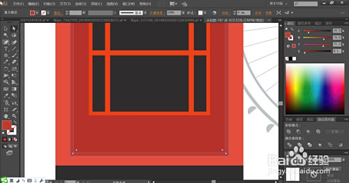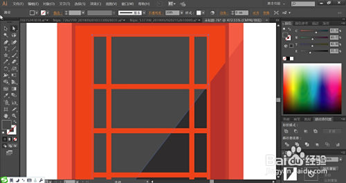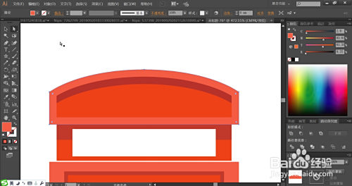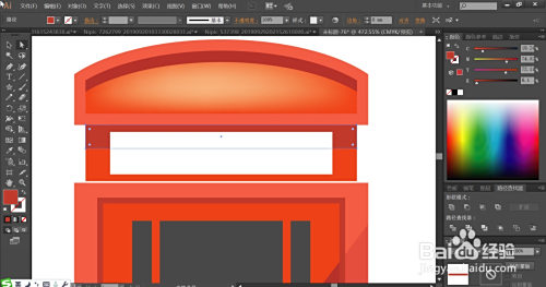 利用网格东西点击一下火红色的上方布局件让其呈现渐变色结果,下方的布局件利用暗红色填充暗影,利用火红色填充本家儿体。