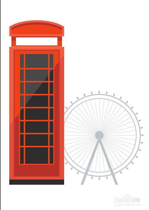 利用矩形东西画出德律风亭的上面,中心的门与玻璃的路径,再绘制出德律风亭远处的摩天轮的根基外形路径。