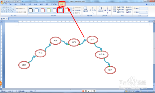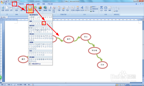 点击插入——外形——曲线箭头毗连符——把每个地址毗连起来。