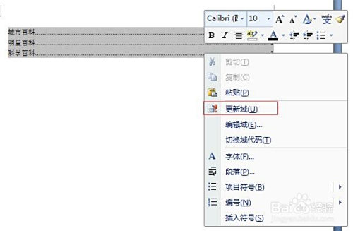 点击目次,然后右击选择‘更新域’,在跳出来的对话框中选择更新整个目次,这样目次的页面就主动更新了。