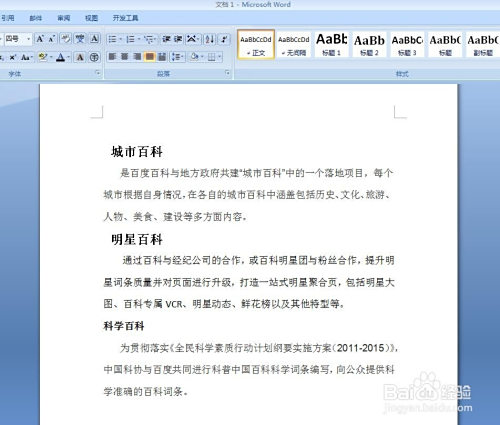 起首打开word文档,在文档里弄好题目和分段,下图为小编搜刮百度百科的资料。
