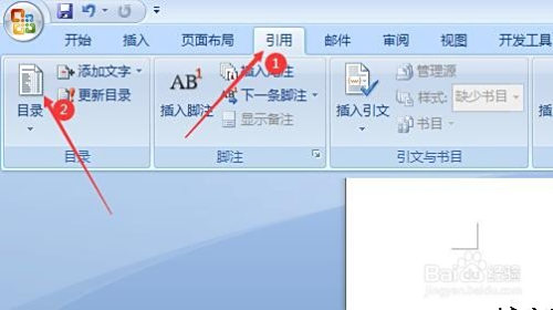 然后先在文档上方点击要插入目次的位置,再点击菜单栏里的【引用】,再点击‘目次’。