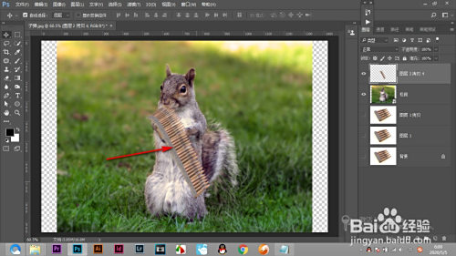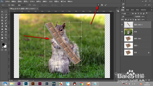 6.然后放到需要的素材上,启动自由变换中的变形东西。