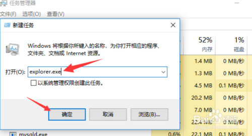 第四,当我们看到下图,可以在运行桌面中输入explorer.exe,点击确定。