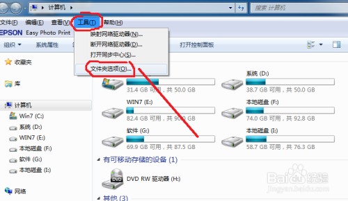 一般文件的默认保留位置都在系统盘C盘,文件夹或许是埋没的。打开【我的电脑】单击上方菜单栏【东西】选项,找到【文件夹选项】,点击【查看】。
