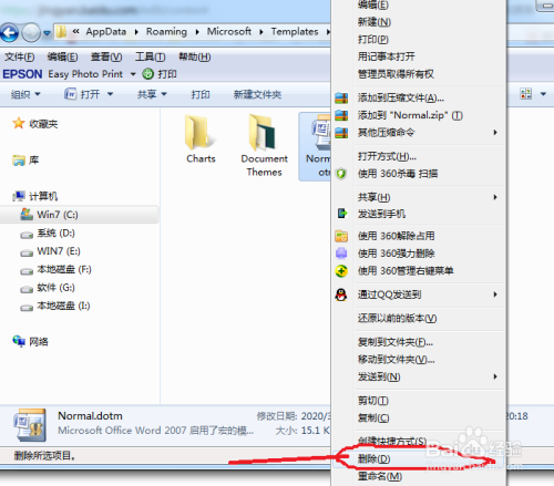 然后在打开系统C盘,在C盘的Documents and Settings\Administrator\application data\microsoft\templates中找到“Normal"文件,将其删除。