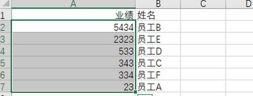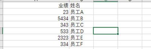 若数据表如图所示,数据条有其他信息,依旧需要按业绩进行降序排序,并与员工连结对应关系