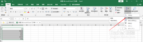 因为是从大到小排序,便是降序,是以在排序与筛选下拉框中选择降序